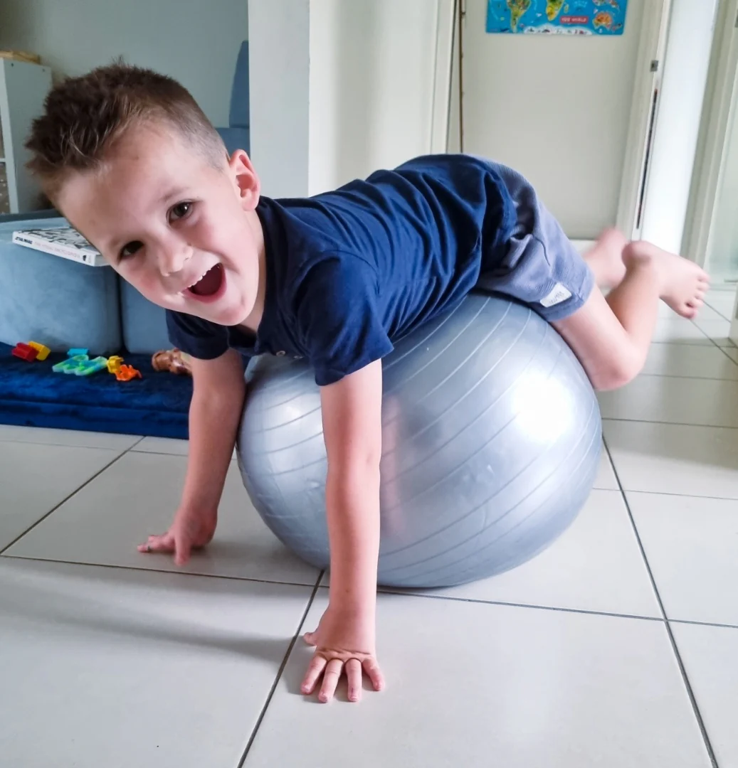 Designed for active play and motor development, this 55 cm exercise ball is made from strong anti-burst PVC and includes a hand pump for easy inflation. When fully inflated it provides a firm yet bouncy surface that kids can sit, roll or bounce on — encouraging movement that feels fun and purposeful.